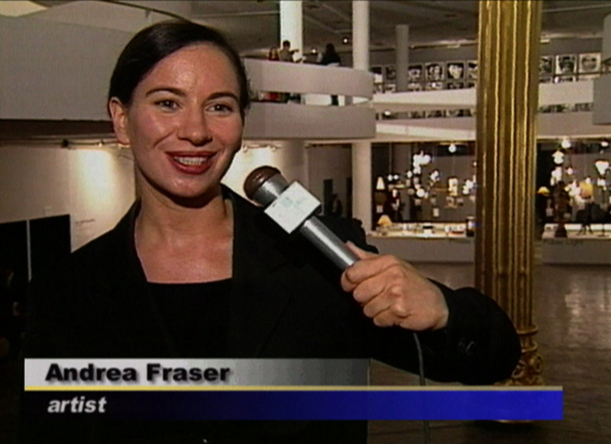 Andrea Fraser, Reporting from São Paulo, I'm from the United States, 1998 (still). Courtesy the artist and Marian Goodman Gallery. © Andrea Fraser.