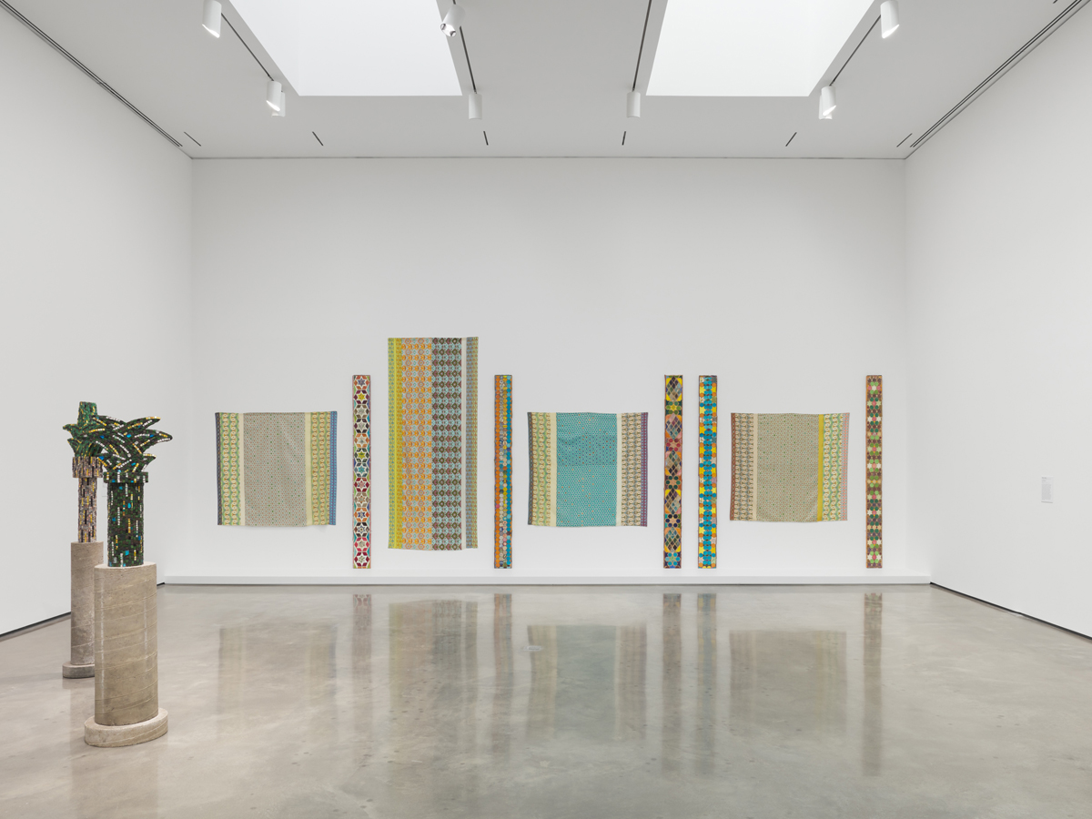 P+D’s merit may be in its incompleteness as a project, inviting reassessment not only of the movement proper, but how it might further illuminate works we think we already know. Hamza Walker’s catalog essay triangulates P+D with conceptualist Daniel Buren and abstract painter Rebecca Morris. Katz insinuates P+D’s legacy with those of Anni Albers, Sonia Delaunay, Natalia Goncharova, Hilma af Klimt, even Andy Warhol. Could we add Sigmar Polke and Sheila Hicks? And numerous other contemporary artists come to mind, notably Sanford Biggers, Anoka Faruqee, and Cauleen Smith. Do their practices signal a reclamation or a continuity?