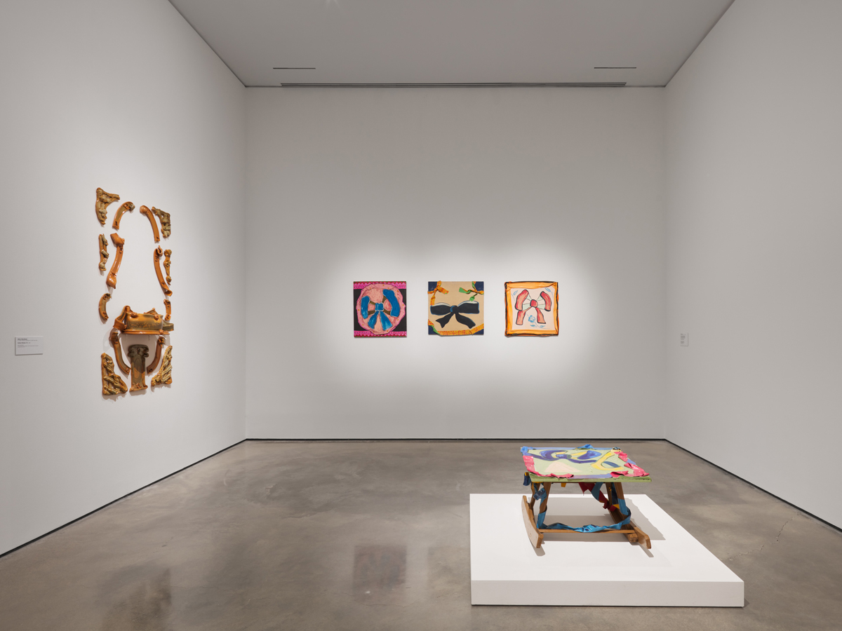 With Pleasure: Pattern and Decoration in American Art 1972–1985, installation view. Courtesy Hessel Museum of Art, Center for Curatorial Studies, Bard College. Photo: Olympia Shannon. Pictured, center on back wall: Ree Morton, One of the Beaux Paintings (series), 1975.