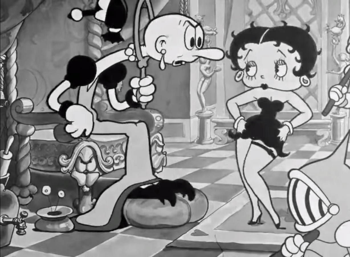 As with all fantasies, the real-world evolution of this collective dream was not without its cruelties, such as the Taylorized animation workforce, with the lowest paid often women who painstakingly cut and colored individual animation cells. Or the infringement lawsuit brought against Max Fleischer and Paramount by Helen Kane, a performer whose act inspired Betty, and who in turn may have ripped part of it off—that famous Boop-Oop-a-Doop—from a Black performer by the name of Little Baby Esther. (Kane lost, and both women remained uncredited and disenfranchised, dying in relative obscurity, while Betty’s fame lives on.) But in the present moment of fatigue, like the weary population Benjamin speaks of in “Experience and Poverty”—written the year Betty Boop: Snow White was made—“to whom the purpose of existence seems to have been reduced to the most distant vanishing point of an endless horizon,” I like to think of how we might all live and sleep and dream together, finally not as apart or indifferent as we imagine.