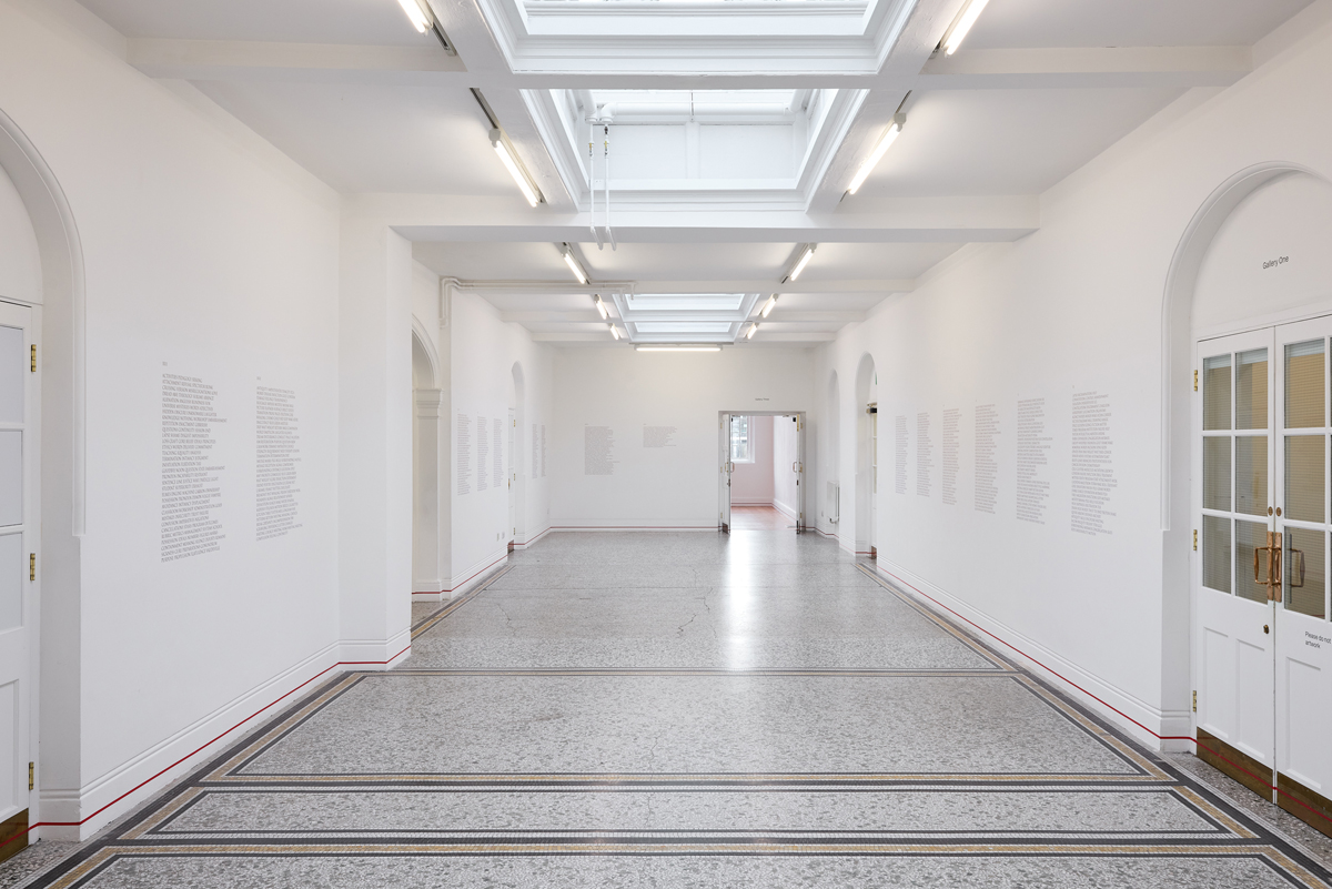 Gregg Bordowitz: There: a Feeling, installation view. Courtesy Camden Art Centre. Photo: Luke Walker. Pictured, foreground: Tetragrammaton (Camden), No.1-12, 2021.