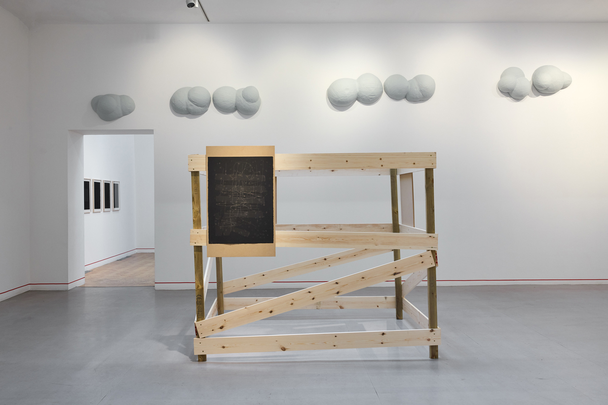 Gregg Bordowitz: There: a Feeling, installation view. Courtesy Camden Art Centre. Photo: Luke Walker. Pictured, upper wall: Baroque Clouds, 2018–ongoing.
