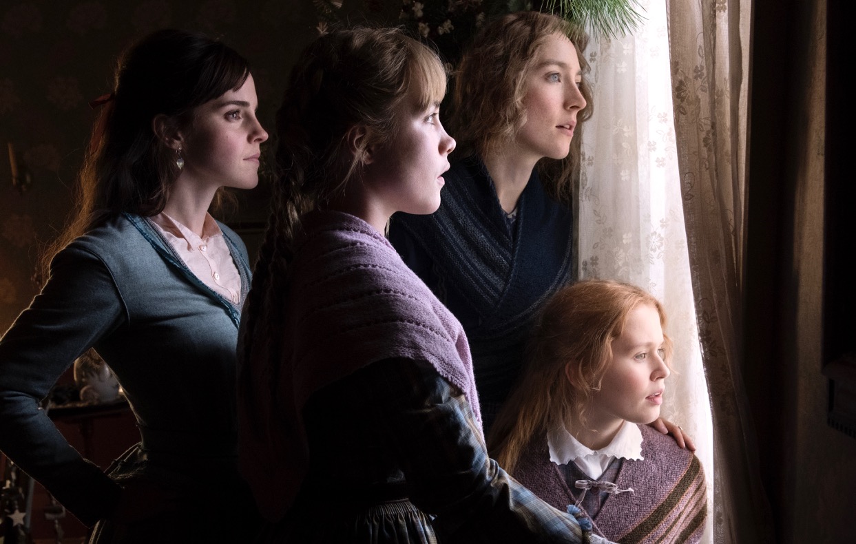 Emma Watson as Meg, Saoirse Ronan as Jo, Eliza Scanlen as Beth, and Florence Pugh as Amy in Little Women. Photo: Wilson Webb. © 2019 CTMG, Inc. All rights reserved.