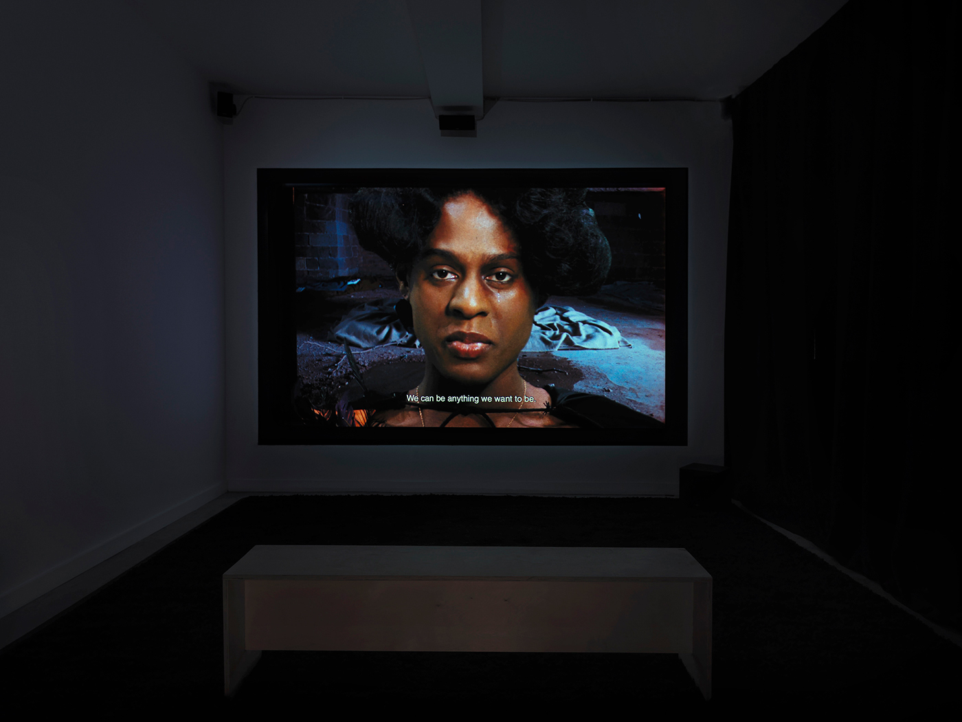 Like Pleasure Garden, Salacia—a saltwater goddess in Roman mythology—is a nom de guerre. The references are numerous. Activist Sylvia Rivera, who appears midway into the film via found footage, assimilates the Hudson to the River Jordan. At the end, Jones uses water as a looking glass. But “salacia” might also suggest the “saltwater slavery” theorized by historian Stephanie E. Smallwood, who sought to write the experience of the transatlantic slave trade not as an orderly linear narrative, but as “an indeterminate passage” of ceaseless rupture with no known end. When, in a voiceover, Rivera says, “You got to keep fighting girly,” she is also speaking to a limboed past—Tourmaline refuses the container of time in this film, and Jones contains the seed that could germinate new readings of that past. Like Toni Morrison’s Sethe in Beloved, for whom “the future was a matter of keeping the past at bay,” there is sweetness in speculation. But in the final moments, Jones gazes into the screen, chanting “We can be anything we want to be” over and over.