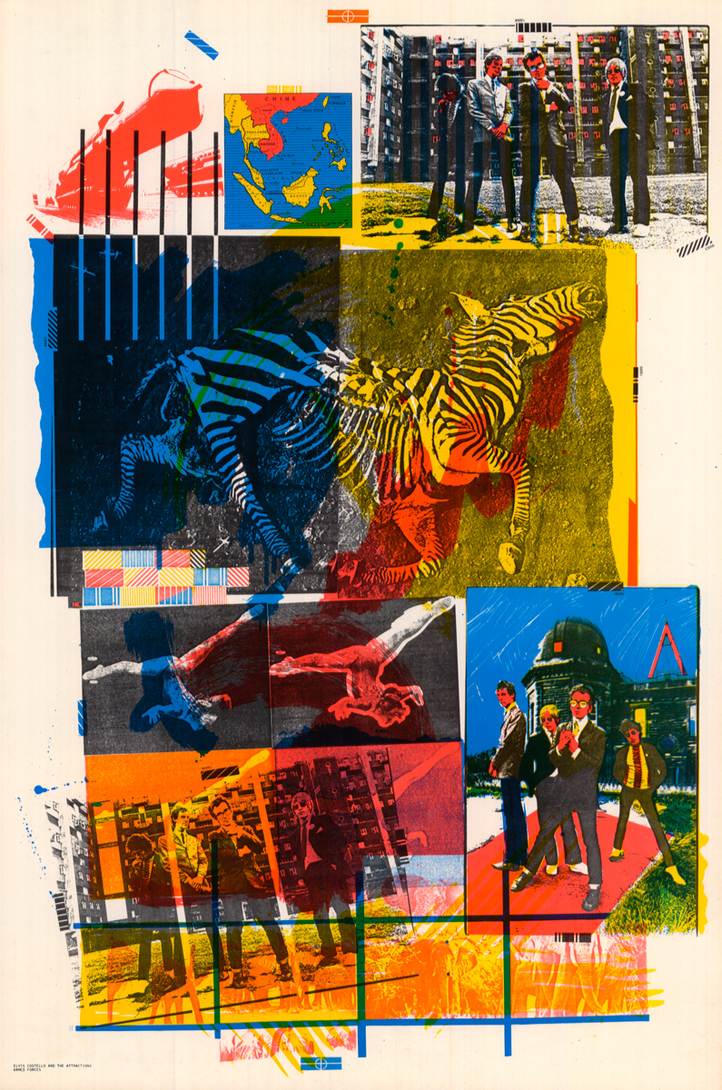 Poster designed by Barney Bubbles, used to promote the American release of Armed Forces, Elvis Costello’s third LP (Columbia Records, 1979). From Reversing Into the Future: New Wave Graphics 1977–1990, page 271. Courtesy Pavilion.