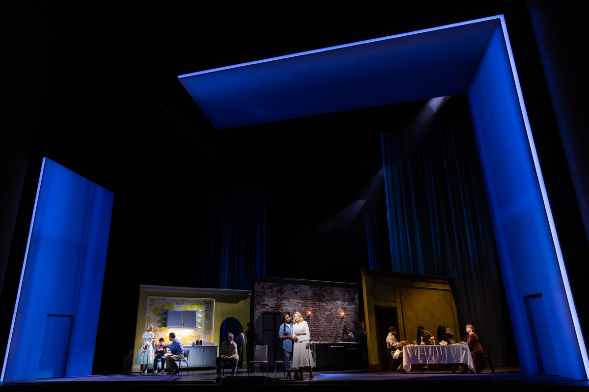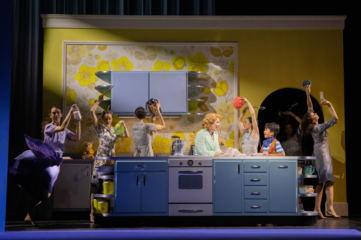 Kelli O’Hara as Laura Brown, Kai Edgar as Richie, and cast in The Hours. Photo: Evan Zimmerman / Met Opera.