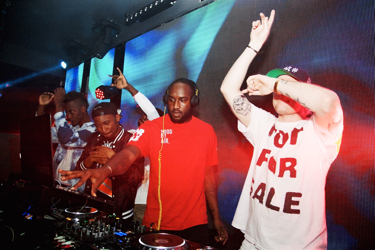 Been Trill group DJing, including Virgil Abloh, Matthew Williams, Florencia Galarza, Heron Preston, Justin Saunders, 2013. Photo: Matthieu Genre.