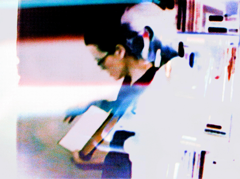 Preiss and McElheny have acknowledged the influence of Jorge Luis Borges’s short story “The Library of Babel” (1941), which offers a brilliant, brain-scratching disquisition on bibliotecas as conduits both of infinity and meaninglessness. I also found myself thinking of Arthur Fournier, in D. W. Young’s documentary The Booksellers (2019), who spoke of “the psychic dreaming that paper allows.” Like Pleasanton, like Ghadiali, the filmmakers focus on color and light, shooting individual book covers so that they recall a Fillmore East poster or Kenneth Anger’s Invocation of My Demon Brother. Old formats—VHS video, 35mm slides—are resurrected and then refilmed on a 16mm handheld Bolex camera to produce a temporal fugue. Burgin’s books are no longer physical objects; they’re on their way to becoming spirit dancers.