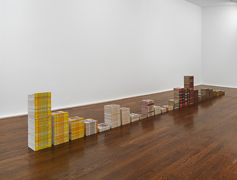 Zoe Leonard, How to Make Good Pictures, 2016. 429 books, 25 1/4 × 6 1/8 × 248 3/4 inches. Image courtesy Hauser & Wirth.
