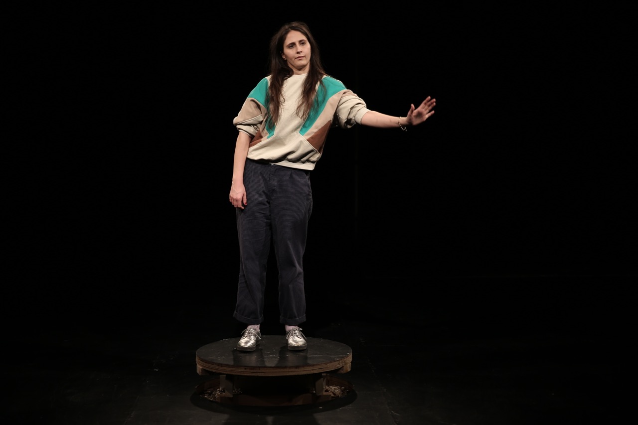 Queens Row, now running at the Kitchen, deepens Maxwell’s longtime preoccupations while evoking a postapocalyptic America. As he did in Ads, his 2010 installation show, the director presents a darkened, unadorned stage and a succession of performers atop a tiny plinth, just large enough for one person. In Ads, the speakers were virtual projections—hologram-like visions of life in nonliving video form. In Queens Row, three actual humans take the stand, women who exude mettle and quiet confidence. (The compelling performers are Nazira Hanna, Soraya Nabipour, and Antonia Summer.) Each offers a monologue recalling her experience of a shared catastrophe. Gradually, as the murky fog hanging over the narrative lifts, we realize their stories intersect.