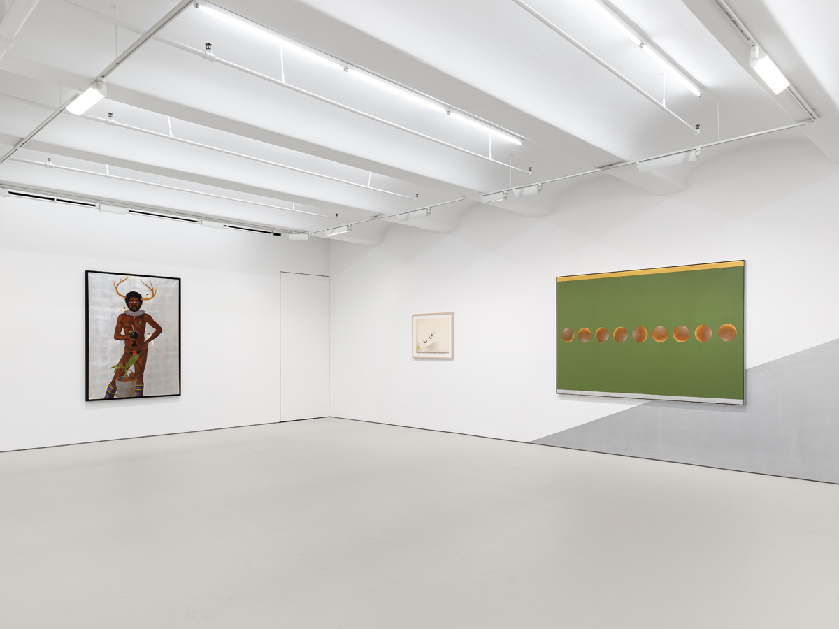 Barkley L. Hendricks: Space is the Place, installation view. Courtesy Estate of Barkley L. Hendricks and Jack Shainman Gallery. Photo: Dan Bradica Studio. © Barkley L. Hendricks. Pictured, far left: Lunar Halo for Dad and Lou, 1997.