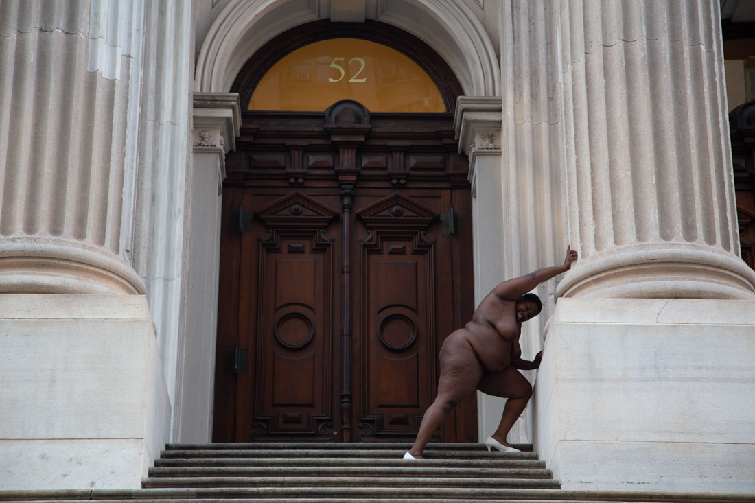 Nona Faustine, They Tagged The Land With Trophies And Institutions From Their Rapes And Conquests, Tweed Courthouse, NYC, 2013. Courtesy the artist and Higher Pictures.
