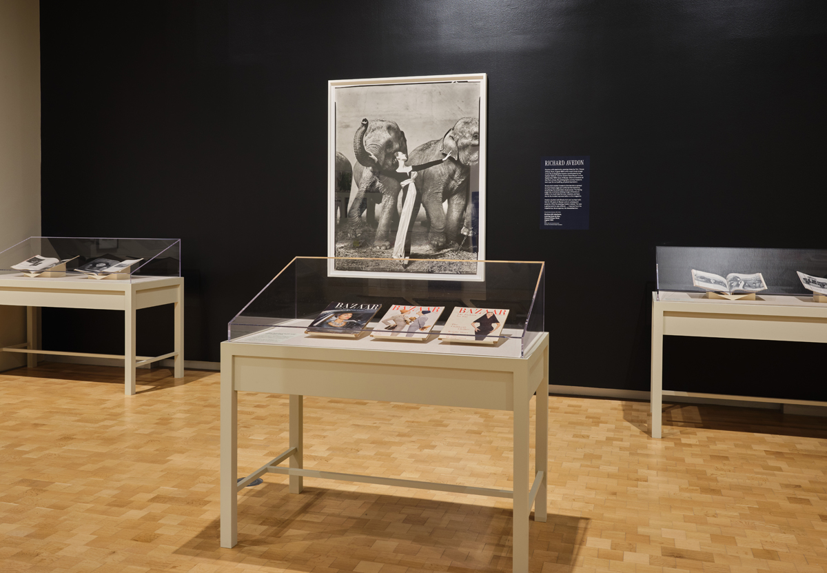 Alexey Brodovitch: Astonish Me, installation view. Photo: Alexander Rotondo. © Barnes Foundation. Pictured, center back wall: Richard Avedon, Dovima with elephants, evening dress by Dior, Cirque D’Hiver, Paris, 1955.