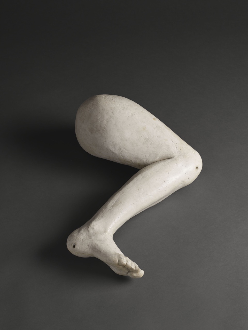 Alina Szapocznikow, Leg, 1962. Plaster, 7 7/8 × 19 5/8 × 25 inches. © ADAGP. Courtesy the Estate of Alina Szapocznikow / Piotr Stanislawski / Galerie Loevenbruck / Hauser & Wirth. Photo: Thomas Barratt.