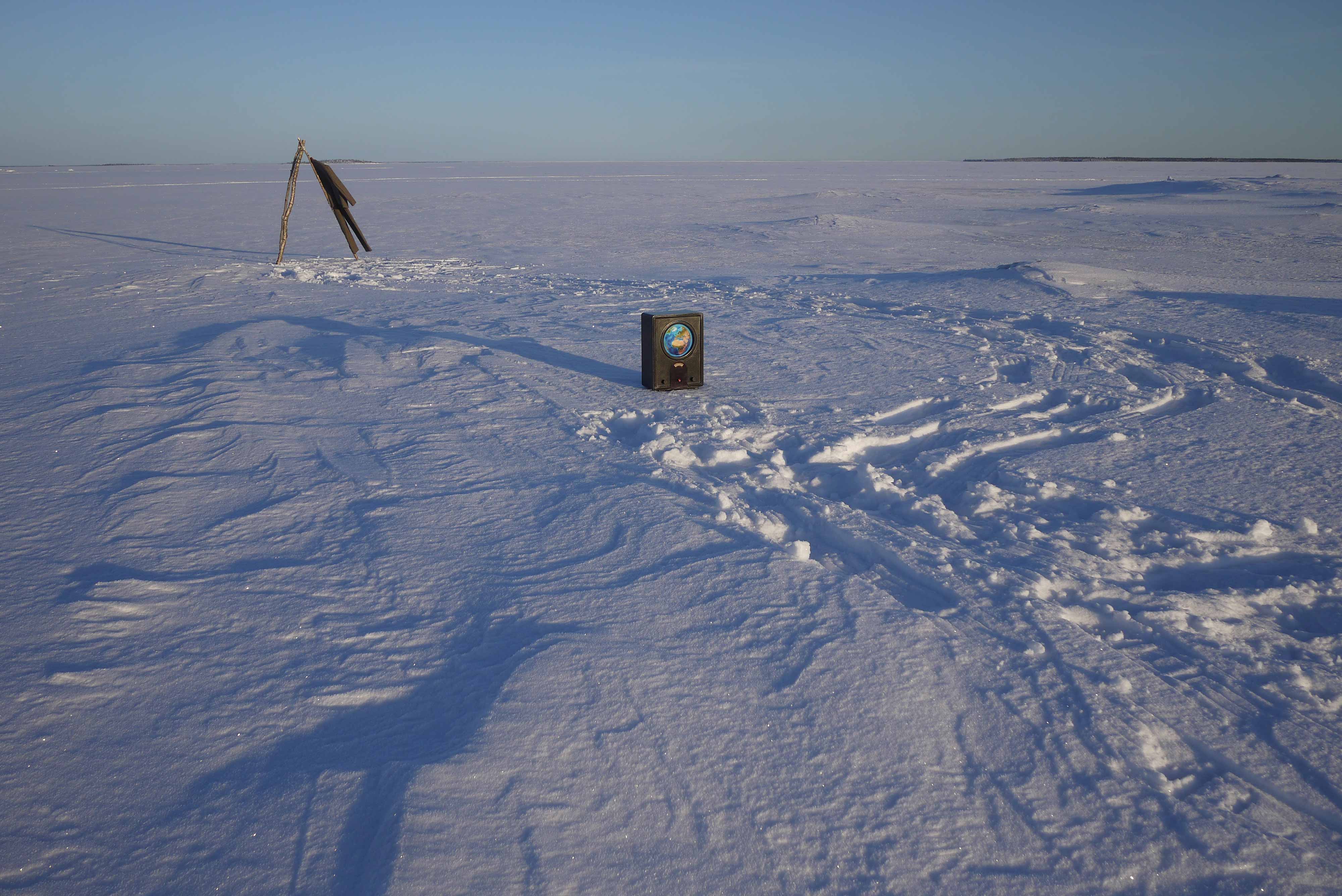 Goodbye, World, curated by Andreas Templin and Raimar Stange, apexart international exhibition located on an ice floe in the Bay of Bothnia, Swedish Lapland (and online here), on view until the ice melts
