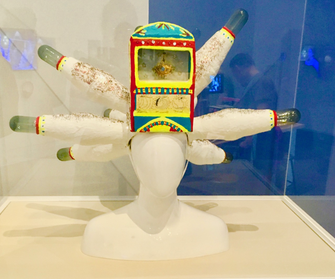 Mundos Alternos: Art and Science Fiction in the Americas, installation view. Pictured: Robert “Cyclona” Legorreta, Headdress from Transcend, 1989/2017. Photo: 4Columns.