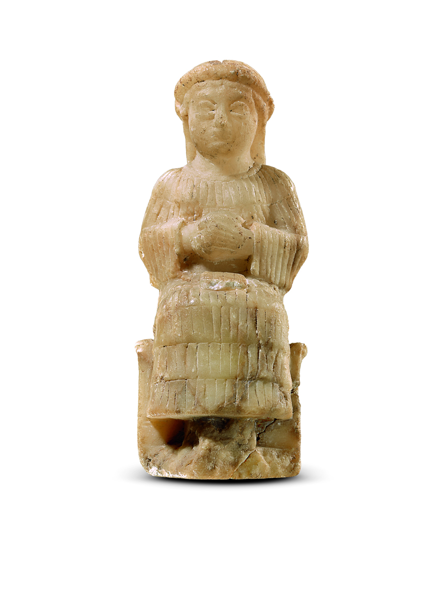 Seated female figure with tablet on lap, Mesopotamia, Neo-Sumerian Ur III period (ca. 2112–2004 BC). Photo: Olaf M. Teßmer. © Staatliche Museen zu Berlin-Vorderasiatisches Museum.