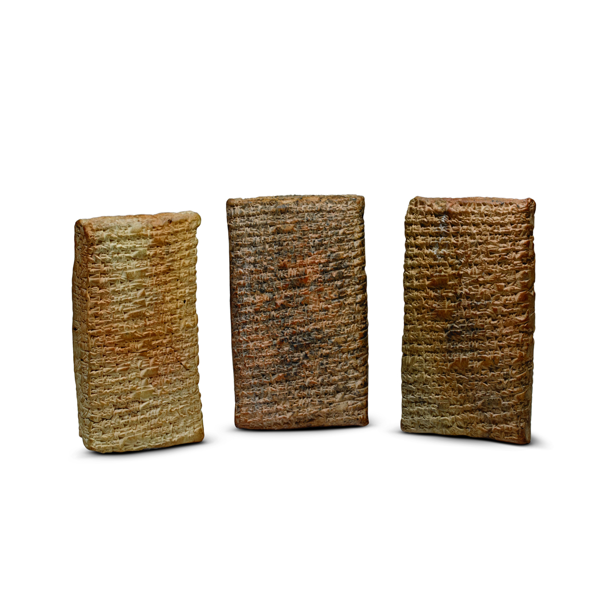 Tablets inscribed with “The Exaltation of Inanna” in three parts, Mesopotamia, possibly Larsa (modern Tell Senkereh) Old Babylonian period, ca. 1750 BC. Courtesy the Yale Babylonian Collection. Photo: Klaus Wagensonner.