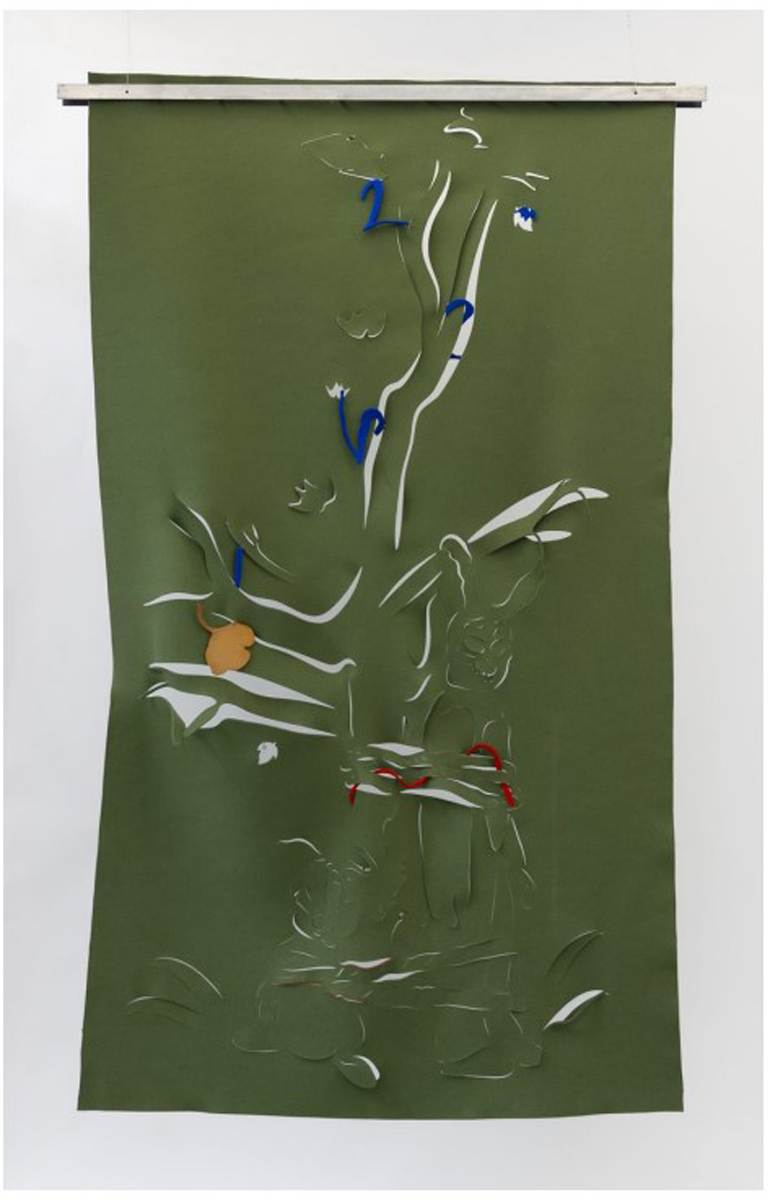 Rivane Neuenschwander, The Silence of the Sirens, 2013. Felt, thread, fusible interfacing, D-ring metal, 51 1/8 × 73 1/4 inches. Courtesy the artist and Amant.