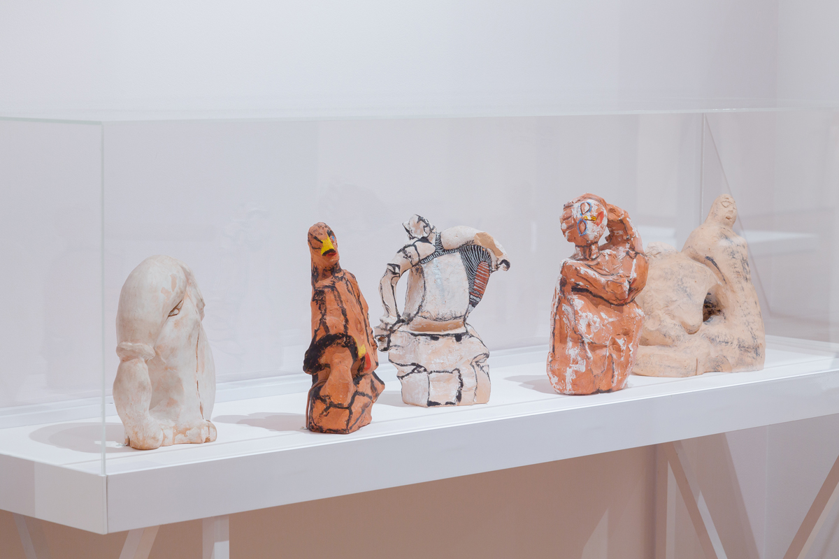 A compelling alternative to the breakthrough narrative, in Caland’s case, is the story of her release from Lebanon—from the abundant corruptions of a failed political project and from the palpable limitations of a nationally construed art history—and her return to embrace it, nostalgically, at the end of her life, when she moved back in 2013 to care for her dying husband, whom she had never divorced. In detailing the formal, material correlatives to Caland’s lived experience, Tête-à-Tête manages to be truly revelatory—for example, by including five tiny sculptures from 1983 and a terrific collection of sketchbooks—while completely downplaying the idea that Caland is a new discovery.