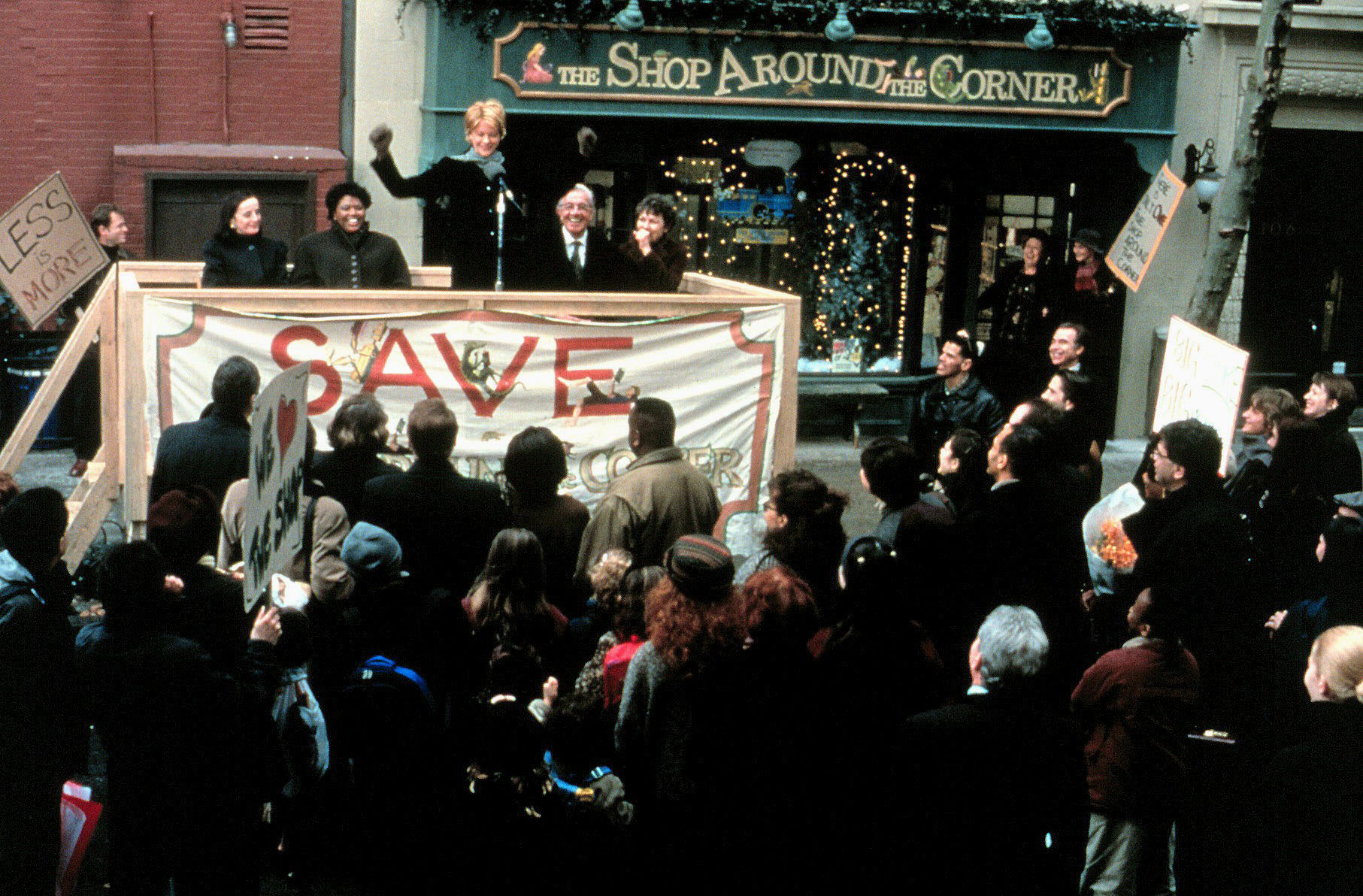 You’ve Got Mail updates this, with email, during a time when email was still a novel and exciting way to communicate, and not the burden it is often seen as now. Joe Fox (Hanks), a swaggering big-box bookstore owner, opens up a new branch of his emporium on the Upper West Side, where a small, second-generation bookshop owned by Kathleen Kelly (Ryan) is struggling to stay afloat. Kathleen’s Shop Around the Corner—its name an ode to Ernst Lubitsch’s 1940 film—eventually closes, swallowed by the Fox Books behemoth. All the while, Kathleen and Joe, who met pseudonymously in an AOL chat room, are conducting an increasingly intimate email correspondence—which continues even as they squabble over business matters IRL, as their separate romantic relationships fall apart, as Kathleen descends into grief over the shuttering of her store.