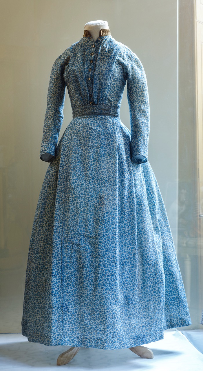 Two-piece printed delaine dress (of cotton and wool), ca. 1850, worn by Charlotte Brontë. Brontë Parsonage Museum. Image courtesy the Morgan Library & Museum. Photography by Gareth Gardner photography + journalism.