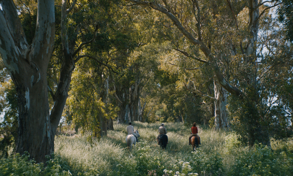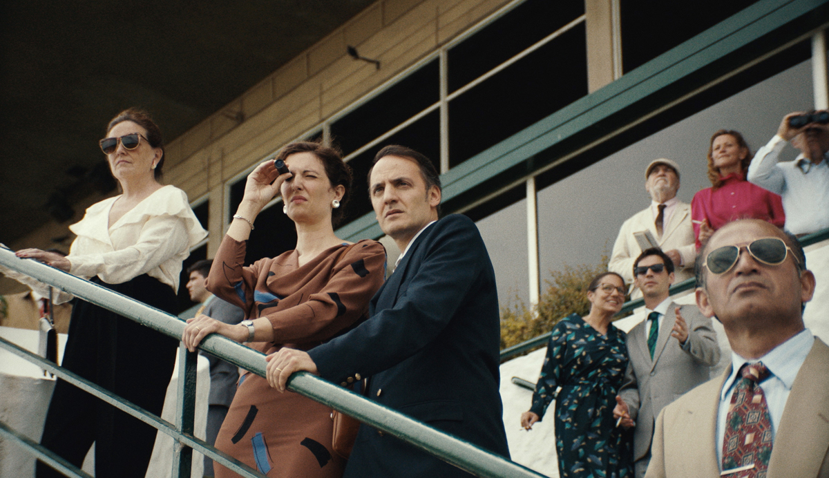 To aid him in his mission of soothing the skittish plutocrats, Yvan’s wife, Inés (Stéphanie Cléau), accompanies him. The financier’s soigné spouse has a gift for extracting useful intel during insipid conversations—about Gstaad, say—with the privileged matrons of Buenos Aires, desultory chats held in vast living rooms or in Hockney-perfect pools. (Rarely without a cigarette, Inés never passes up an opportunity for a languorous swim; water-averse Yvan’s lone concession to leisurewear is to unbutton the top of his white dress shirt.) Playing patrician characters whose life work consists of charming, coaxing, and flattering the likewise wealthy, no matter how vulgar or repugnant, Rongione and Cléau adroitly assume the opacity that is the inexorable result of this kind of relentless performance, donning facades not just while trying to woo the rich but also during private moments. For this couple, the inviolable boundary between outer and inner life has long been eroded.