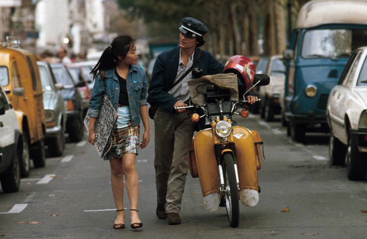 Jules’s surreptitious recording spawns a busy, byzantine plot. Unbeknownst to him, two Taiwanese music executives at the Wally recital espied his piracy and are now hotly pursuing him and the tape. The waiflike letter carrier is also the quarry of two additional dyads—a thug duo and a pair of cops—who want to retrieve another recording, but one that Jules has no idea he possesses: an audio cassette made by a sex worker that’s filled with incriminating evidence about the leader of a drug and prostitution ring, which she deposits in his moped mail pouch seconds before she is murdered. Aiding and advising Jules is an odd couple consisting of teenage wiseacre Alba (Thuy An Luu) and the much older guy she lives with, Serge (Richard Bohringer), a quasi-mystic sybarite fond of long tub soaks and proffering lessons on the zen of buttering baguettes.