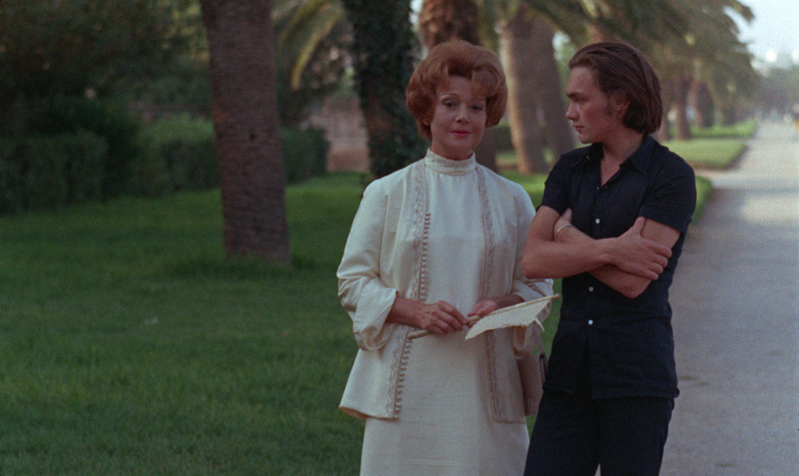 Gilles, like Earthlight’s central character, was a white Frenchman originally from the Maghreb: he was born into a Jewish family in Algiers in 1938 and arrived in Paris in 1960, two years before Algeria won its independence from the metropole. During Pierre’s sojourn in Tunisia, which broke free of French rule in 1956, he recalls very little from his childhood there. But he seeks out someone who seems to remember everything: Mme Larivière (Gallic icon Edwige Feuillère), a neighbor from the Tunis days, who arrived from Limoges in 1936 and has stayed put in the North African country. The brutal legacy of colonization is gingerly broached: Mme Larivière, a retired schoolteacher, makes halting reference to “hard times” following ’58, the year after Tunisia declared itself a republic. “My head’s full of memories; that’s why I never get bored,” she gleefully boasts to Pierre. The question lingers as to how many of those rosy recollections are the result of strenuously forgetting more baleful realities.
