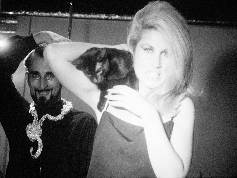 While Drink reveals, at times excruciatingly, de Antonio’s growing helplessness in the throes of alcohol’s debilitating depressant effects, Paranoia (1966) highlights the nonstop chatter of mod fashion designer and boutique proprietress Joan “Tiger” Morse, a fan of stimulants. (“Tiger did take a lot of amphetamine,” Warhol notes in POPism—as did nearly everyone mentioned in this chronicle.) So constant is Morse’s jabber that the film, a record of Factory habitués trying on clothes and fondling bibelots in Kaleidoscope, her crammed Upper East Side emporium, begins with her in mid-sentence. Rail-thin, sporting metallic eyeshadow and a bejeweled dress, Morse first assists Nico—the German enchantress and chanteuse whose collaboration with the Velvet Underground would be released the following year—with finding a vest and trousers before turning her attention to Ingrid Superstar (described by Warhol as “just an ordinarily nice-looking girl from Jersey”). “Ingrid, come up here and do a tap dance!” Morse commands, one of a string of exhortations that also includes “You do not take a Good Housekeeping seal off the merchandise.” At other times, the couturier turns more pensive: “I wanna know if the Ku Klux Klan buys their sheets by the yard or by the piece.” Morse’s nattering approaches gale-force intensity, threatening to flatten Warhol’s coterie and demolish her entire inventory.