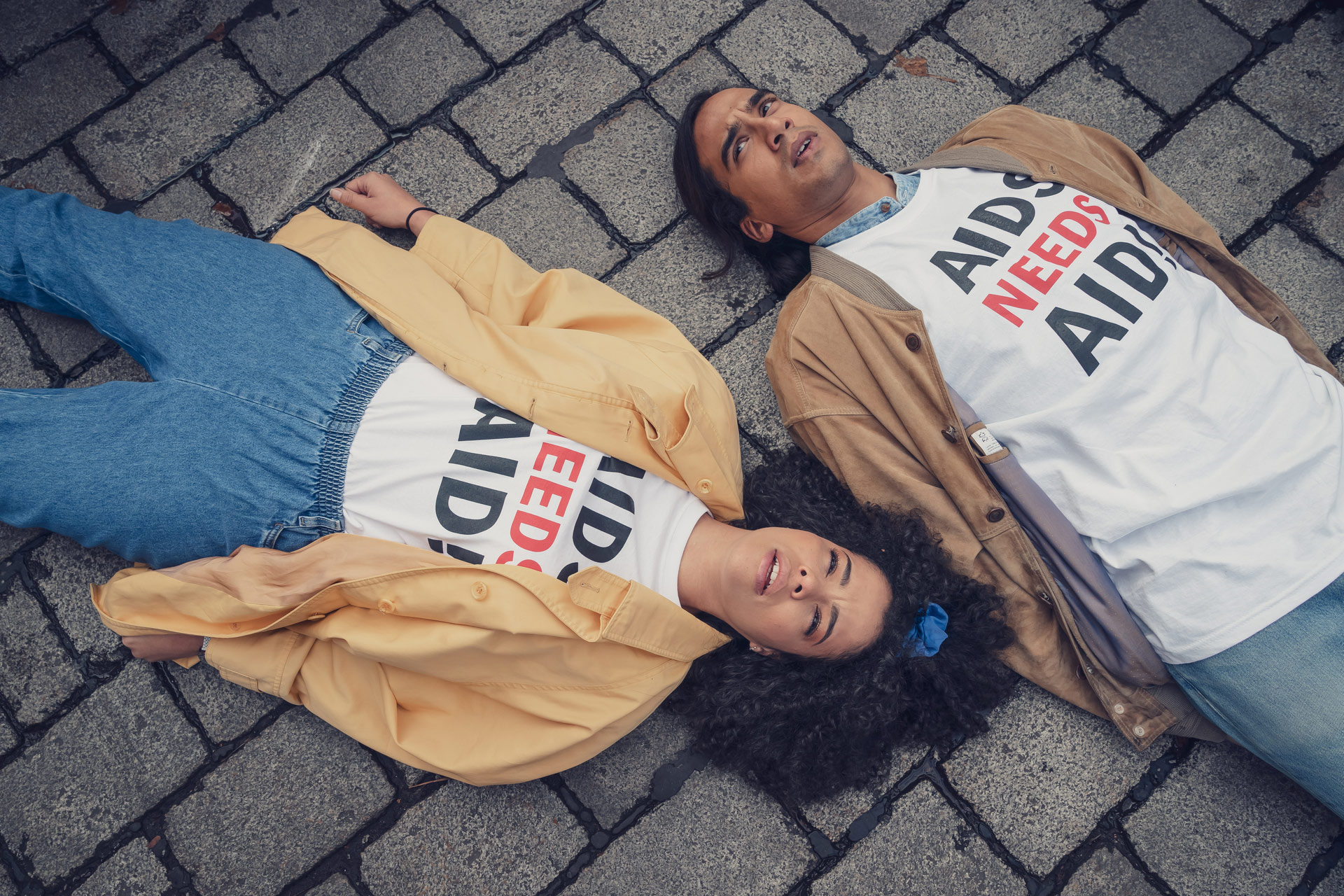 While parents and siblings abound in It’s a Sin, fury is scant. A lone scene is dedicated to a pitifully attended direct action, the participants wearing tees emblazoned with the odd declaration AIDS NEEDS AID!, in front of a pharmaceutical company. There is no mention of London’s ACT UP branch, formed in 1988, or OutRage!, the UK LGBTQ activist group launched in 1990 that figures prominently in Edward II (1991) by the gay British firebrand filmmaker Derek Jarman. It’s a Sin puts a strange spin on “silence equals death,” the most famous slogan of the peak of the plague years—that, sometimes, memorializing equals muffling.