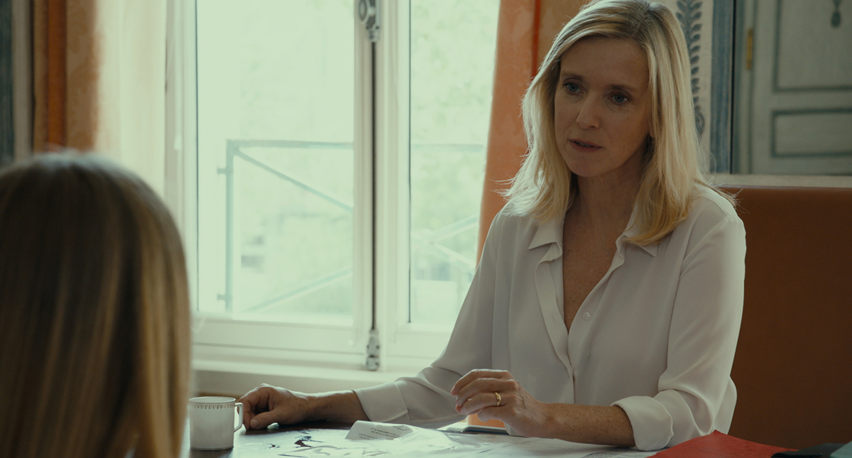 In stark contrast with the grim realities of her workplace, Anne’s domestic life appears idyllic. She and her slightly older husband, Pierre (Olivier Rabourdin), a business executive, live with their two adopted grade-schooler daughters, Angela (Angela Chen) and Serena (Serena Hu), in an elegant house in one of Paris’s affluent, bucolic suburbs. The spouses still share an erotic spark; their children, cheerful and well-behaved, are a constant source of delight. Anne’s sister, Mina (Clotilde Courau), whom she considers her best friend, lives close by. Lounging at home in a sheath dress, a glass of white wine always in her hand, Anne, at least at first, seems utterly content with her haut-bourgeois existence.