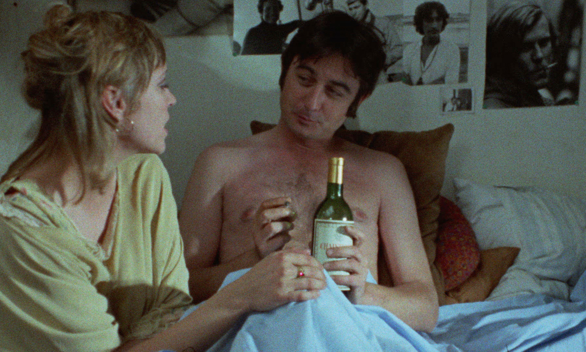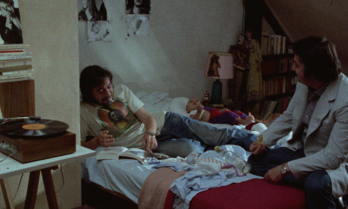 Vivre ensemble was not critically embraced. In her Cannes dispatch for the Village Voice, Molly Haskell wrote, “The film wallows in a Relationship in that oppressive way that is a woman’s sensibility at its worst.” While I don’t entirely disagree with that assessment, especially as it applies to the movie’s desultory final third, I find it much more rewarding to think of Karina’s directorial debut as a kind of gender inverse of another film that premiered at Cannes in ’73: Jean Eustache’s The Mother and the Whore. Like Vivre ensemble, that movie also stars a Nouvelle Vague icon, Jean-Pierre Léaud, as Alexandre, a Parisian dandy (and a clear stand-in for Eustache) in a tumultuous open relationship with a slightly older woman who financially supports him and a nurse devoted to libertinism. Both films showcase attic apartments as key settings, with a particular focus on what happens in and out of the beds that dominate each flat.