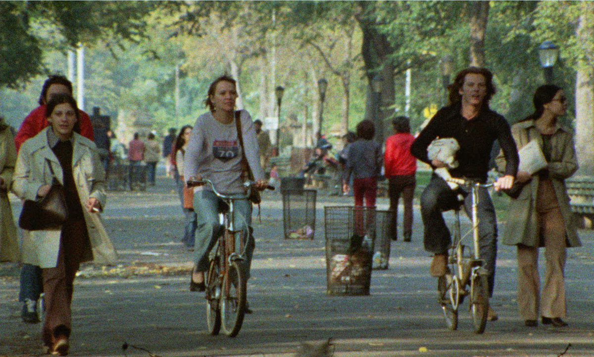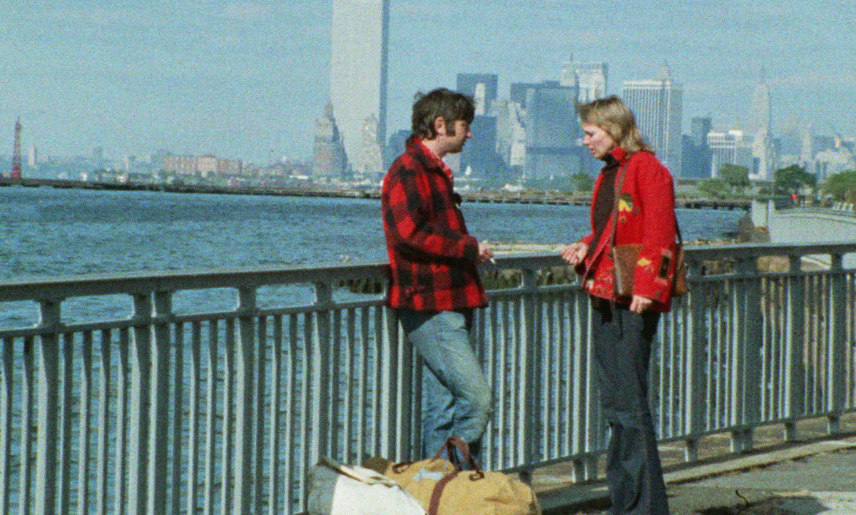 Filming surreptitiously, Karina and cinematographer Claude Agostini remain ever alert to possibilities; at times Vivre ensemble becomes a stealth documentary, capturing a sextet of women engaged in anti–Vietnam War guerrilla theater near one of the Central Park transverses. (This episode is a tart, if perhaps unintentional, rejoinder to the “Vietnam War play” scene in Godard’s Pierrot le fou from ’65, featuring Karina smeared in garish yellowface, wearing a conical hat, and speaking gibberish.) The film also introduced me, a New Yorker since 1996, to a location I had never heard of: Staple Street, a two-block stretch in Tribeca where the penurious Parisians split a hot dog.