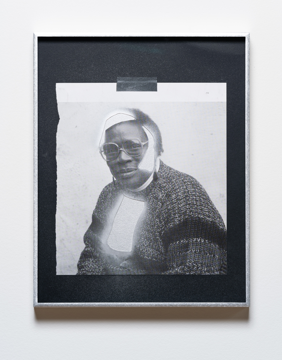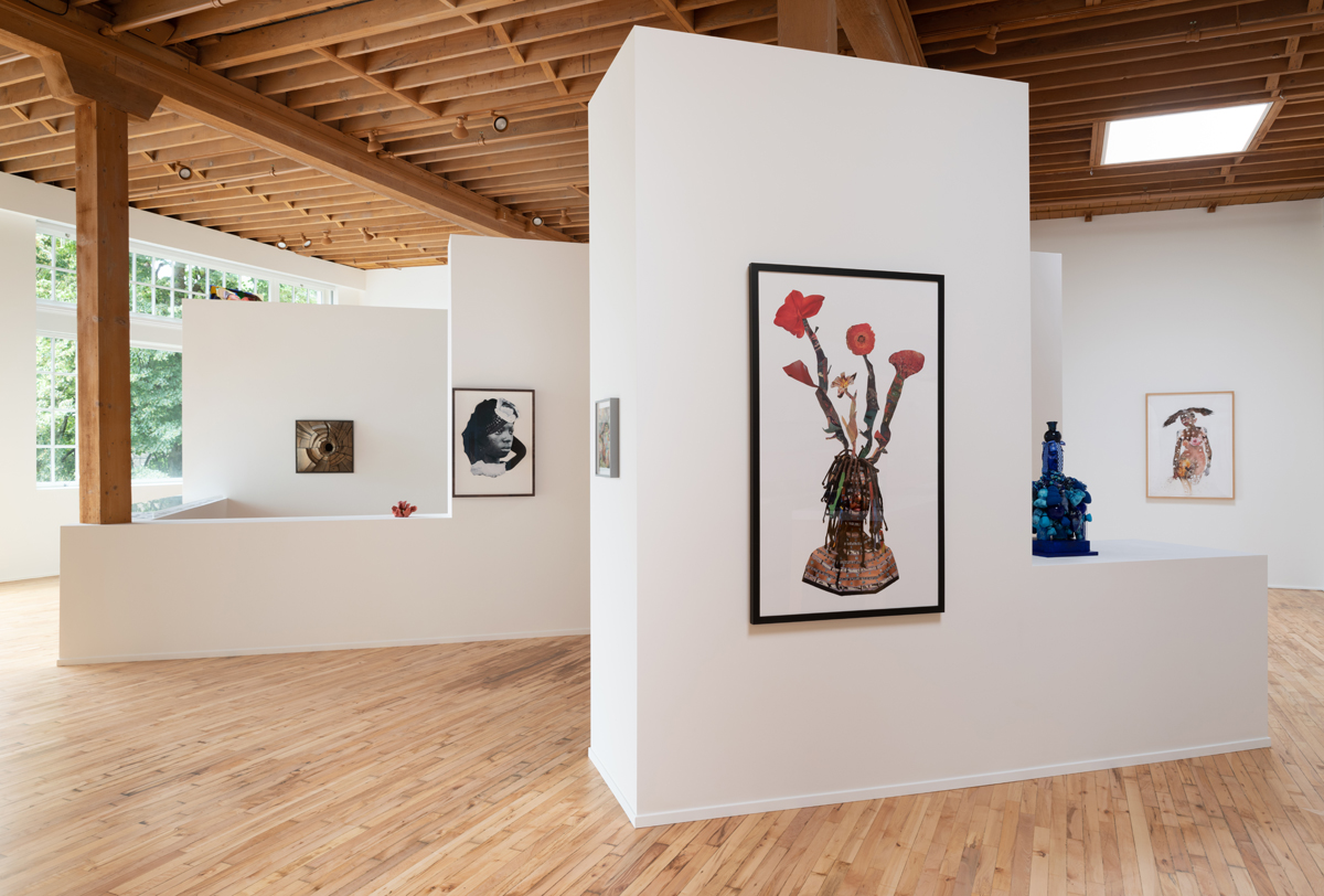 The Rose, installation view. Courtesy the lumber room. Photo: Mario Gallucci. Pictured: AK Jenkins, Regarding Pat Parker (After Robert Giard), 2020. Mixed media collage, 14 × 11 inches.