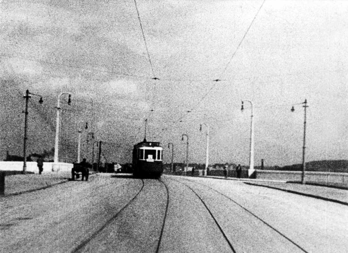 Hammid was active in interwar Prague as a photographer, filmmaker, writer, and curator, making his first foray into directing with Aimless Walk (1930). Initially, the eight-minute film appears to be a city symphony celebrating the speed of the modern metropolis, combining views from a moving tram in a dynamic montage that emphasizes the graphic tension of diagonal lines. Quickly, however, departures from the genre become clear. A protagonist appears, a man who is escaping from the urban core into the languor of the periphery. The tempo slows; architectural elements are reflected in water as unstable, wavering forms, offering a visual metaphor for the loosening of life’s strictures. The film concludes with a surrealist touch, as its central figure splinters into two, with one incarnation staying behind at river’s edge, watching the other as he returns to the demands of the city.