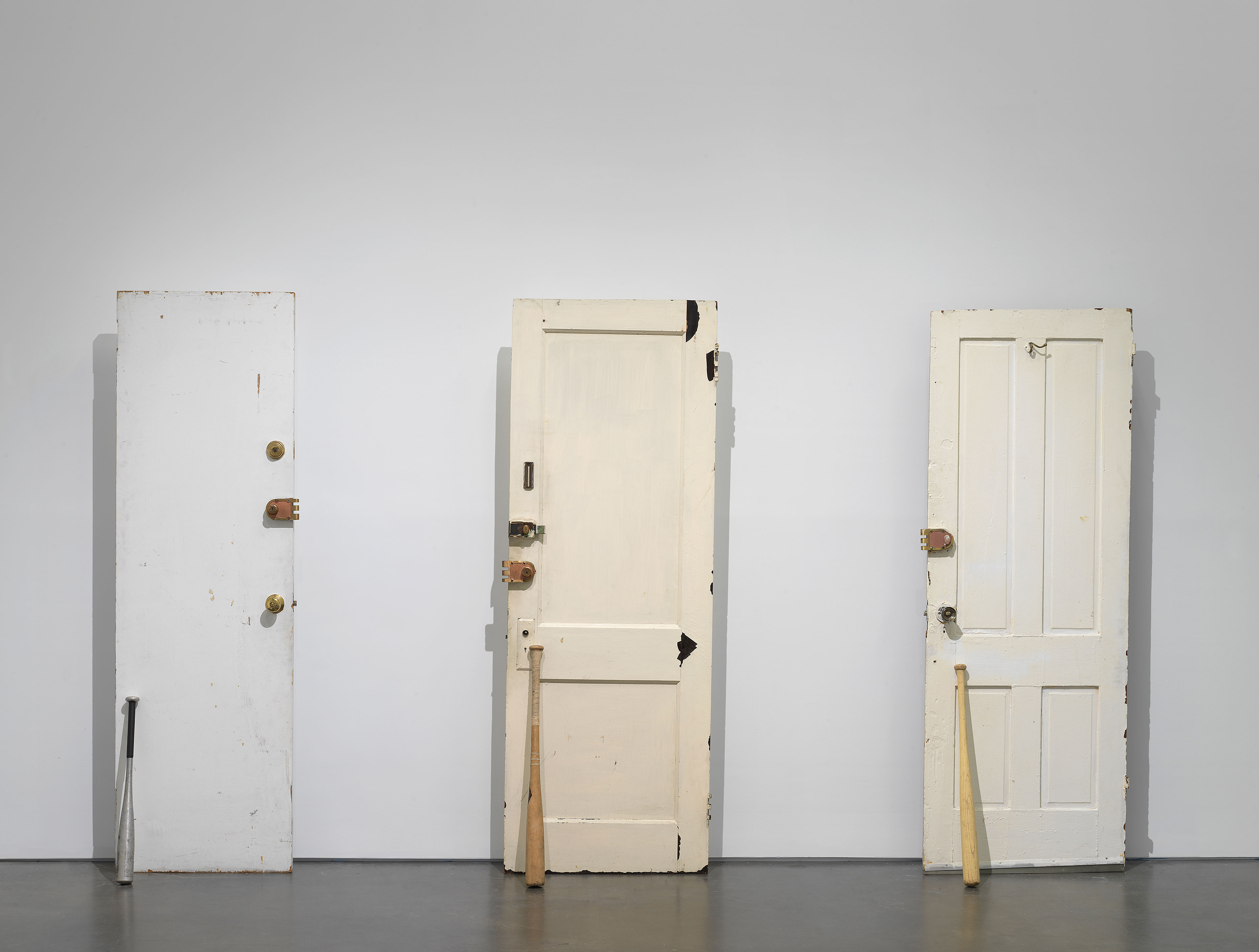 Depression and acceptance are highlighted instead. Theaster Gates’s hypnotic video of a black monastic order of musicians ritually smashing up a ruined church conveys the strange beauty of urban decay, a heartfelt scene whose accidental convergence with gentrification narratives that recast inner-city dilapidation as an edgy urban aesthetic is not exactly the artist’s fault. Exceptions to the exhibition’s somber mood include a series of magnetically on-form Kara Walker drawings and Diamond Stingily’s freestanding doors paired with baseball bats. Walker’s drawings evoke black grievance rather than grief, a tonal shift that emphasizes how little the mournful framework suits her bracing coldness, Stingily’s careful warmth, or even, really, an exhibition that aims to respond robustly to white supremacy.