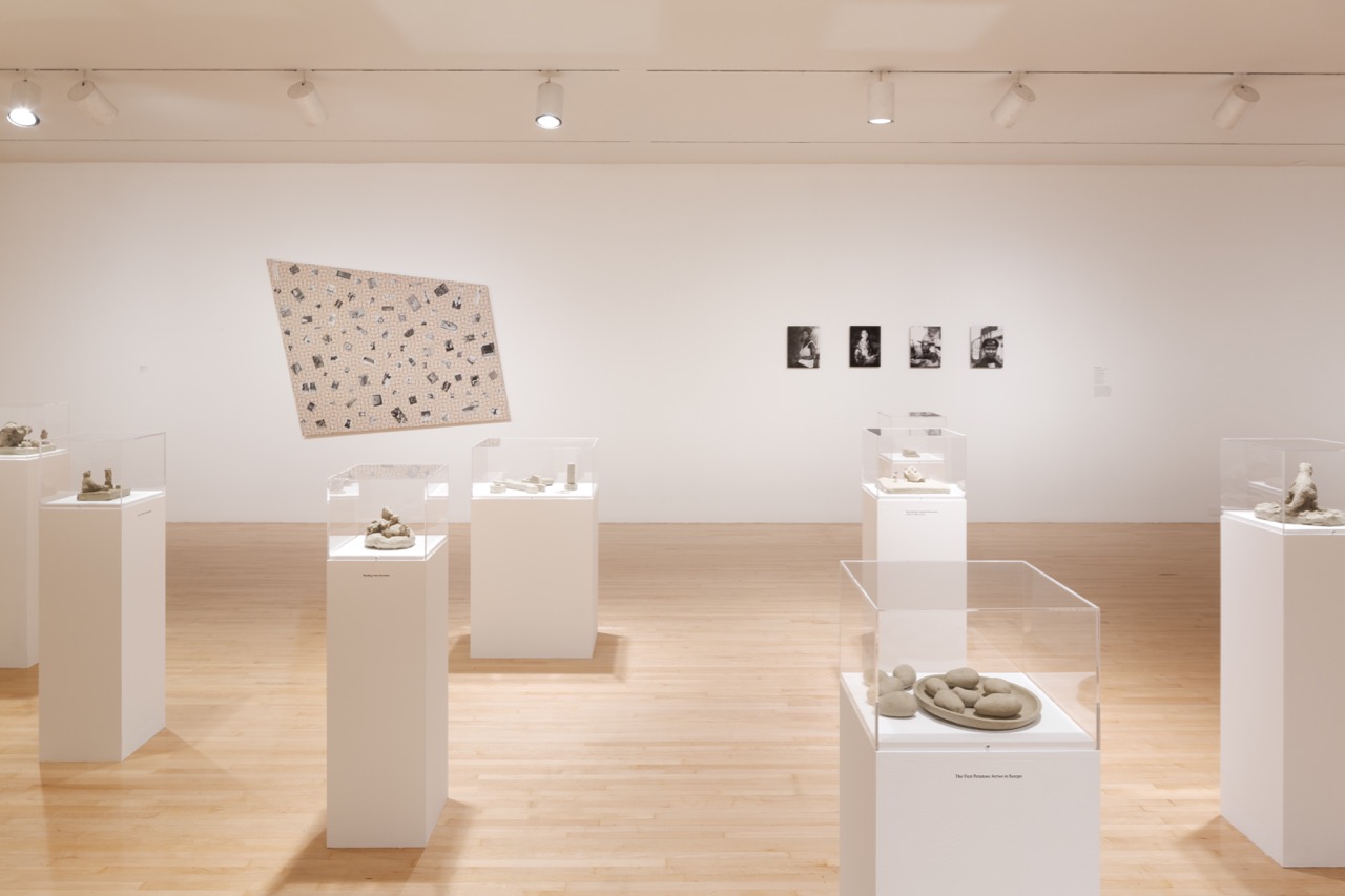 From there, the show expands not in any chronological or otherwise linear fashion but coral-like, branching and associative, into explorations of dailiness, work, and the passage of time. In Fischli and Weiss’s Suddenly this Overview (1981–), a series of hand-sculpted clay objects and vignettes, the results are playfully mundane and absurd: a plate of potatoes, dog bowls, two people outside an office building with the caption “Smoking Break.” In Presentation Sisters (2005), Tacita Dean’s 16mm film, which follows a group of nuns going about domestic tasks and devotions in Cork, Ireland, the effect is subdued and meditative—an untroubled echo of another film committed to the minute observation of daily life, and one of Farber’s favorites, Jeanne Dielman, 23, quai du Commerce, 1080 Bruxelles (1975) by Chantal Akerman.