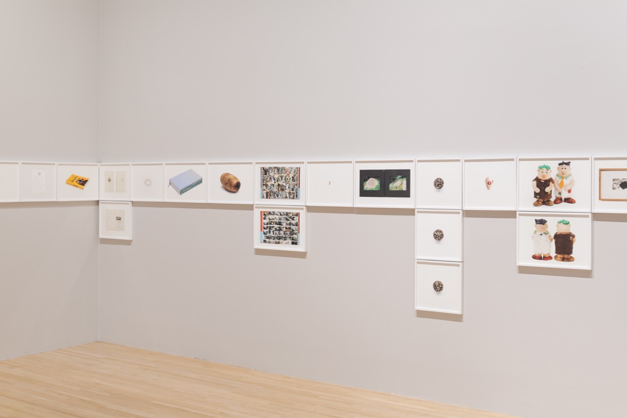 Alongside the joys of daily life, there’s an awareness, especially in the exhibition’s later galleries, of how the present keeps hardening into the past. In The Selected Gifts, 1974–2015 (2015–16), Roni Horn photographs presents she’s received from friends against stark white grounds, the camera converting personal ephemera—books, a pair of Flintstones figurines, a stereoscopic photo of the moon—into artifact.