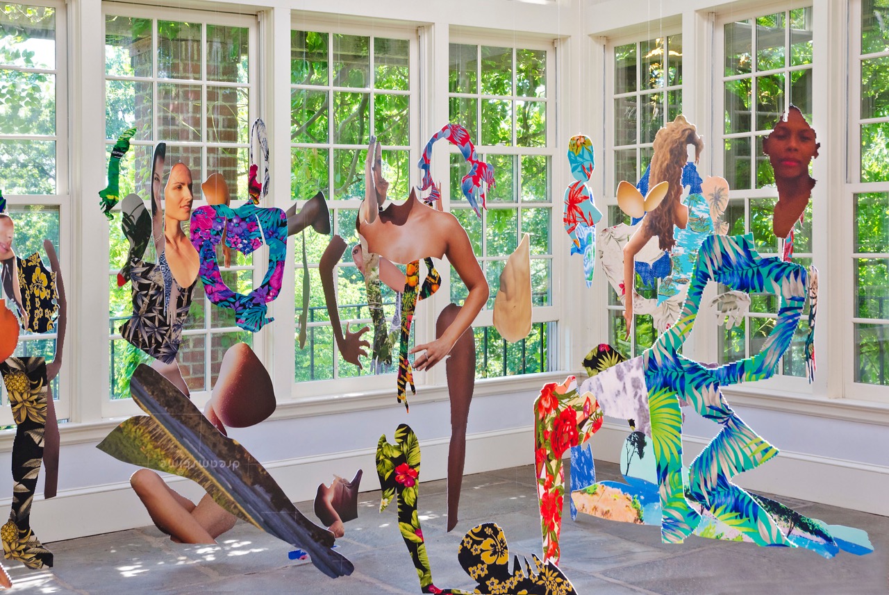 Joiri Minaya, #dominicanwomengooglesearch, 2016. Digital print on sintra and fabric collage. Installation view at Wave Hill Sunroom Project Space, 2016. Photo: Stefan Hagen.