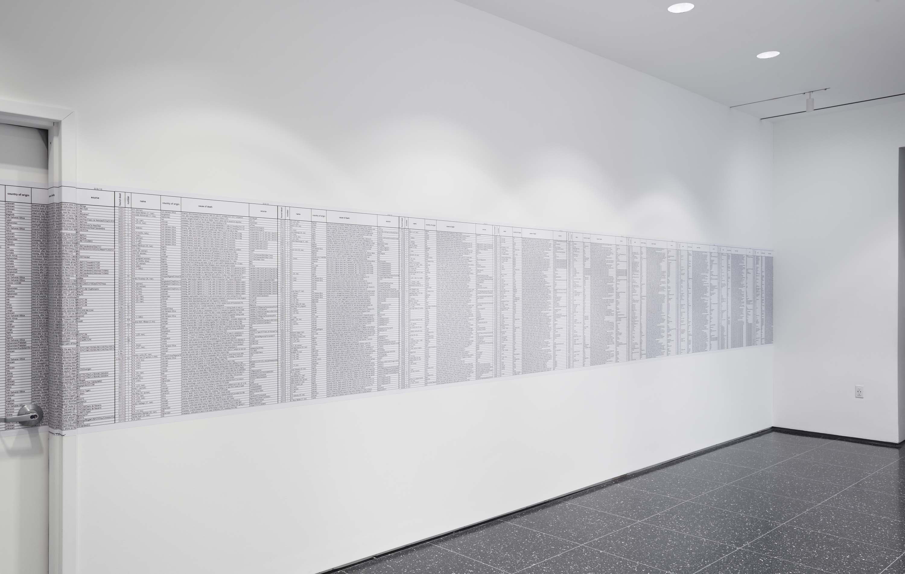 United for Intercultural Action, List of Deaths, 1993–2015. Digital print, 60 × 42 inches. Image courtesy the Museum of Modern Art.