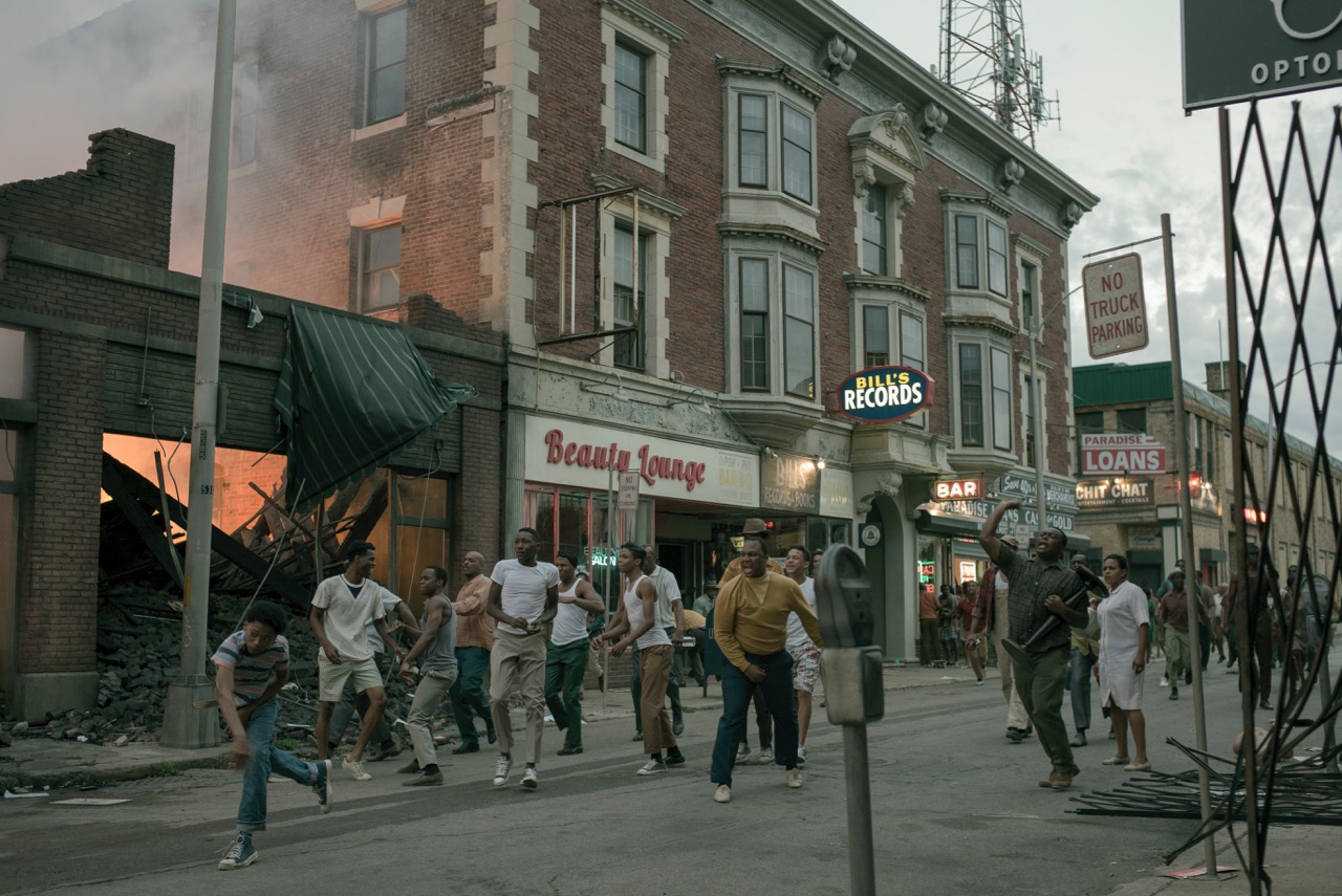 The film begins with a too-brief prologue in which the work of two African-American cultural titans is harnessed to provide the social and historical context sorely absent from the ensuing narrative. Text written by historian Henry Louis Gates Jr. is overlaid on a series of computer-animated panels selected from painter Jacob Lawrence’s beautiful Migration Series (1940–41). They combine for a whistle-stop tour of the mass domestic migration by African Americans from the south to the north of America and its effects, including “white flight,” and racist institutional backlash leading to a rash of violent conflagrations in the 1960s in northern urban centers. Philadelphia, Chicago, and Newark all erupted, as did Detroit, where, according to some sources, the five-day upheaval left forty-three dead, nearly one thousand two hundred injured, over seven thousand two hundred arrested, and more than two thousand buildings razed.