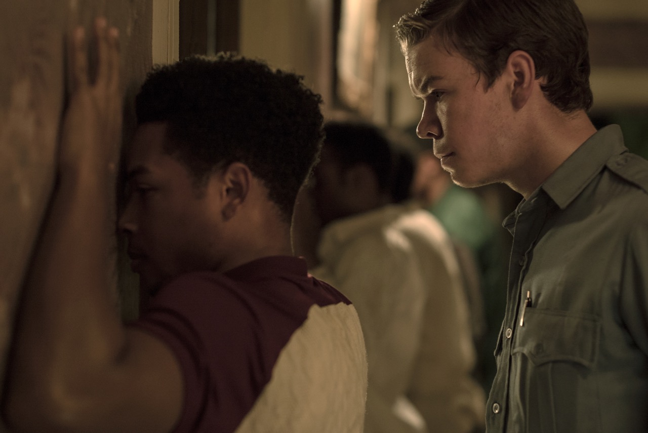 But Detroit runs into trouble at the Algiers Motel, where Bigelow and Boal opt to turn disputed history into a grueling endurance test for the viewer. The set-up of the sequence itself is problematic. While the supposed “sniper fire” from a starter gun is the subject of much speculation—Hersey’s reporting suggests it never happened—Boal’s presentation of the incident makes little psychological sense. He has a young black man, Carl Cooper (Jason Mitchell), deliver an eloquent disquisition on the vicious racism of American police before, inexplicably, firing the gun at said police himself, to teach them a lesson. Boal uses this as a clumsy way to catalyze events, and to shoehorn into the script repeated mentions of a “toy gun,” a reference calibrated to evoke thoughts of twelve-year-old Tamir Rice, shot to death in 2014 by Cleveland police while in possession of a plastic pistol. When the police arrive at the Algiers, the sequence segues into a set piece of graphic murder, beatings, and sexual abuse (of the two white women). There is a particularly ghoulish moment when Poulter’s cop laughingly demands that his captives sing and pray like they are in church at gunpoint—perhaps a grim reference to the racist murder of nine black Charleston churchgoers in 2015.