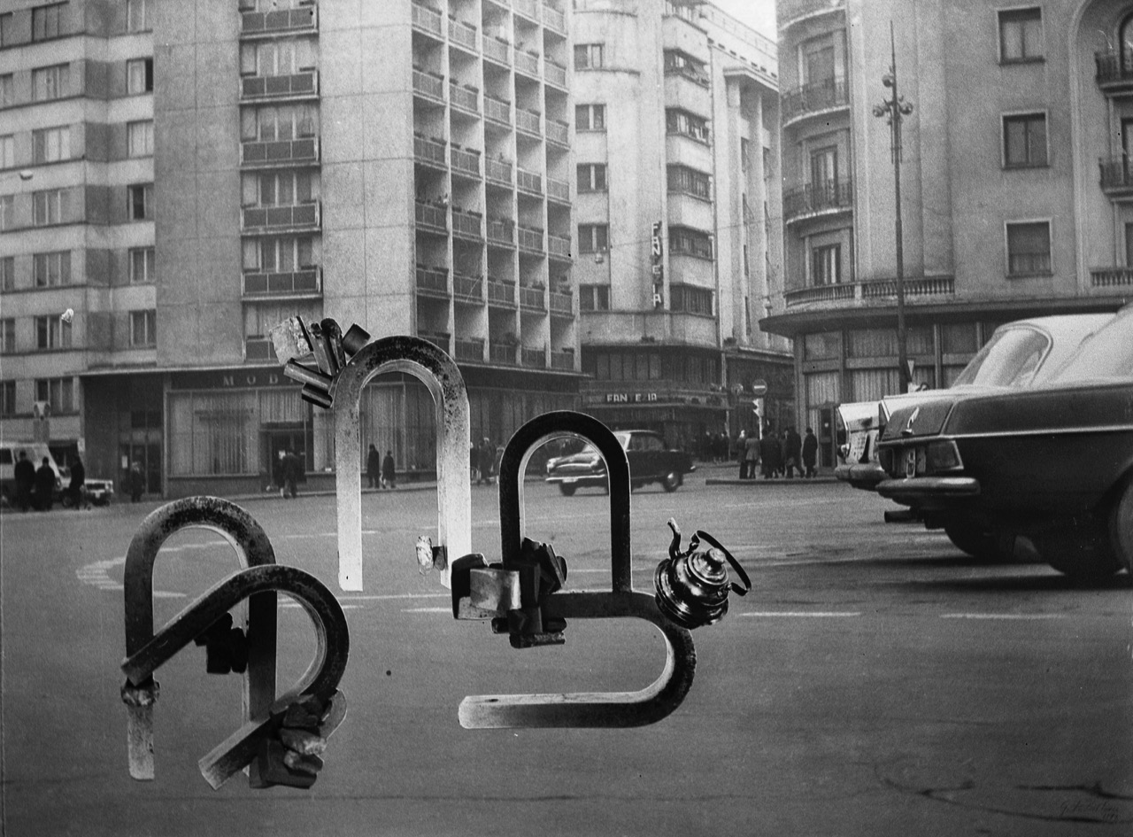 Geta Brătescu, Magnetii in Oras (Magnets in the City), 1974. Detail. Photographic montage. © Geta Brătescu. Image courtesy the artist and Hauser & Wirth. Photo: Mihai Brătescu.