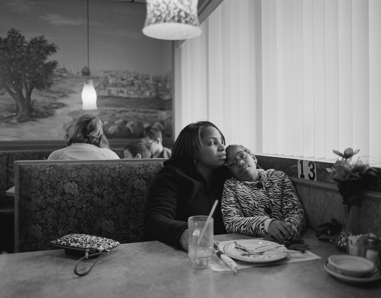 LaToya Ruby Frazier, Shea and Zion at the Badawest Restaurant on Corruna Rd., 2016. Gelatin silver print. Image courtesy the artist and Gavin Brown’s enterprise.