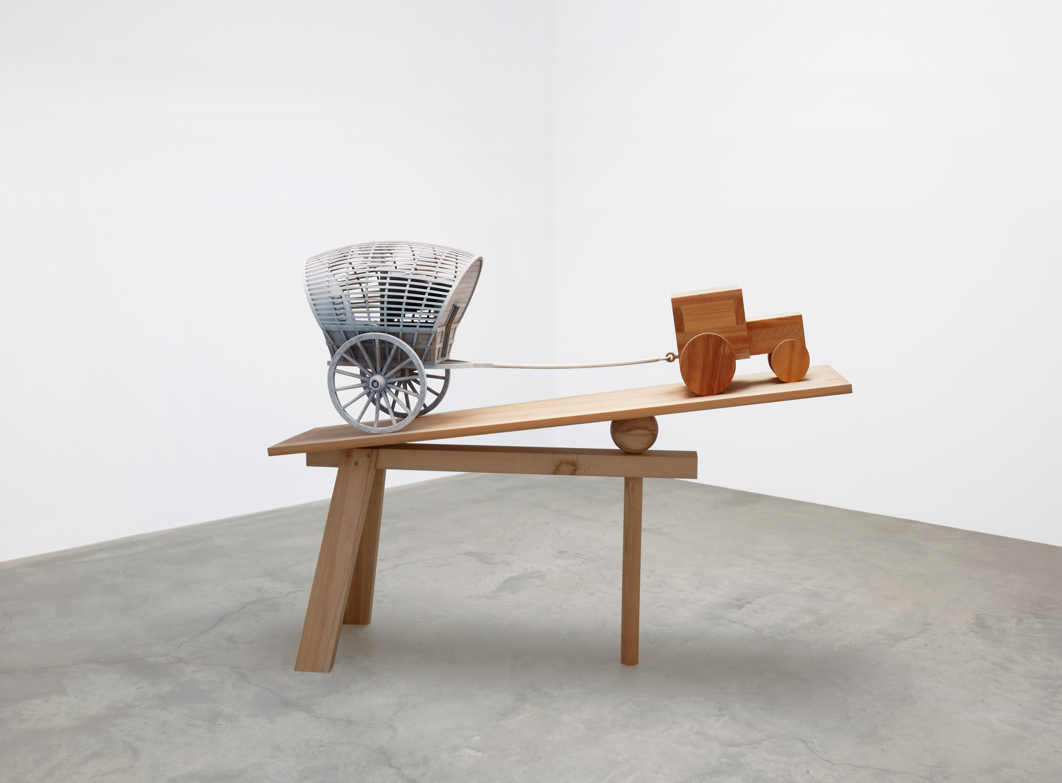 Martin Puryear, Hibernian Testosterone, 2018. Painted cast aluminum, American cypress, 57 × 141 × 44 1/2 inches. Courtesy Matthew Marks Gallery.