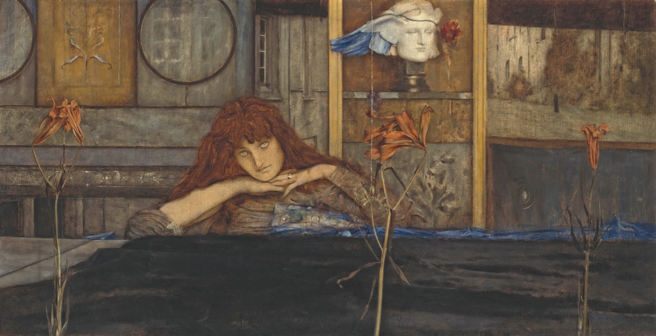Fernand Khnopff, I Lock My Door upon Myself, 1891. Oil on canvas, 28.6 × 55.5 inches. Photo: bkp Bildagentur, Berlin/Bayerische Staatsgemäldesammlungen, Neue Pinakothek, Munich/Art Resource, NY.