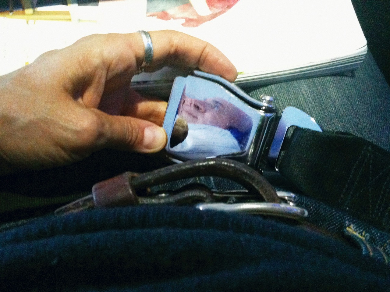 Nina Katchadourian, Bucklehead #1, 2011 (from Seat Assignment, 2010–ongoing). C-print, 15.25 × 19 inches. Image courtesy the artist, Catharine Clark Gallery, and Pace Gallery.