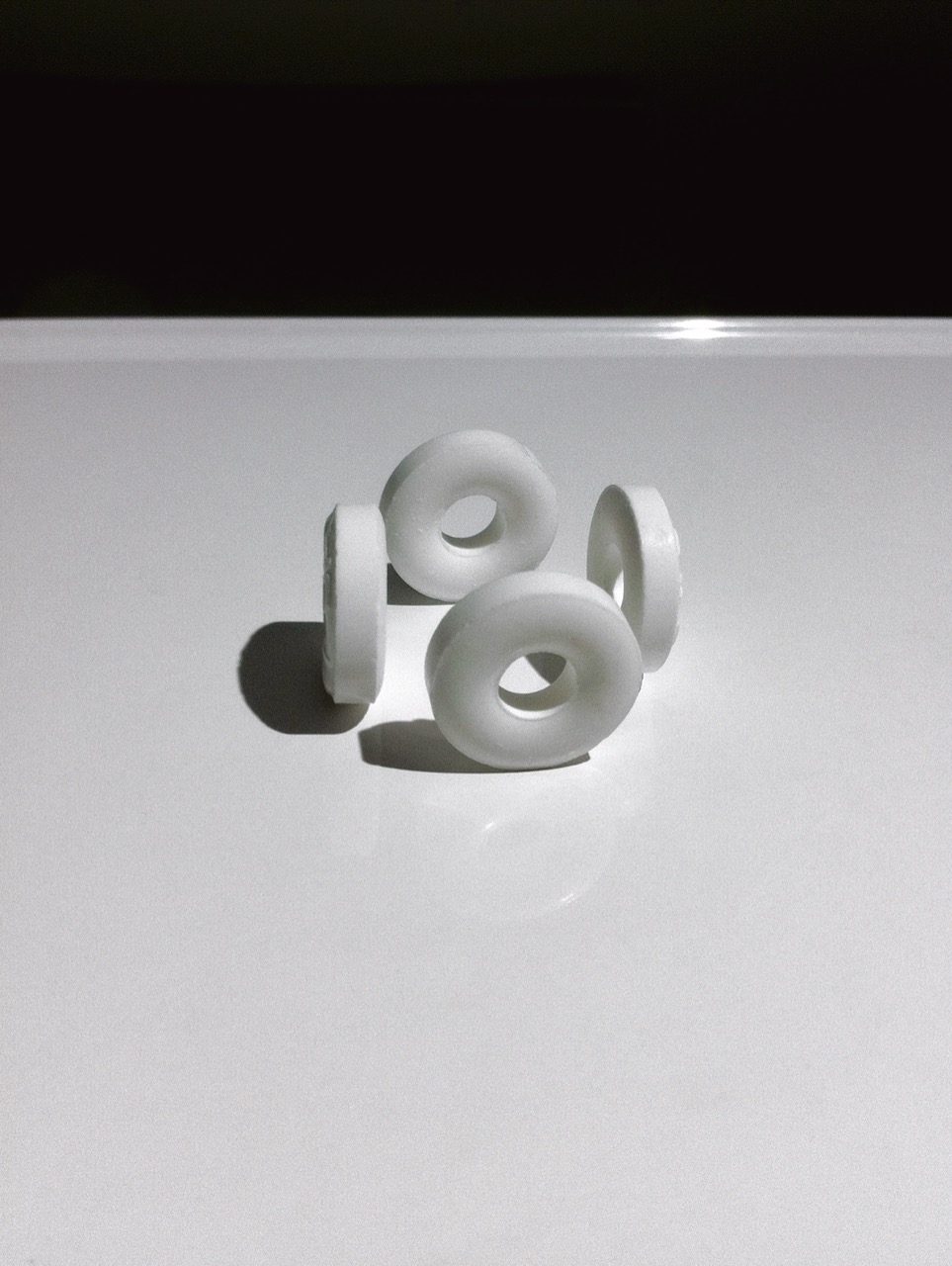 But Katchadourian’s engagement with art history goes well beyond a one-liner. High-Altitude Spirit Photography nods to late-nineteenth-century attempts to capture spectral presences via the new technology of the camera by shooting the glare on glossy magazine pages. By placing bits of orange peel on a photo of a sports field or standing Life Savers candies on their sides, she creates Proposals for Public Sculpture. (In these and many other works in Seat Assignment, disjunction of scale is one of her most valuable formal tools.) Her snapshots of airplane wings, with the seams and rivets of their metal cladding and the decals of arrows and safety stripes, are reimagined as abstract compositions in the style of Rodchenko and Malevich in Window Seat Suprematism.