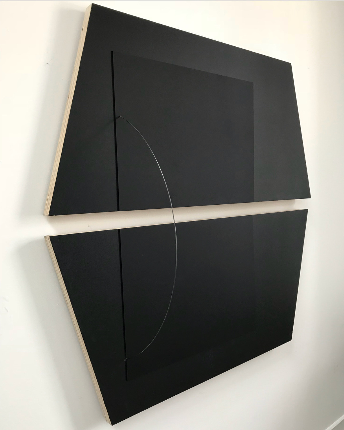 Torkwase Dyson, Black (Hyper Shape), 2017. Acrylic, graphite, wire on panel board, 48 × 48 × 13 inches. Image courtesy the artist.